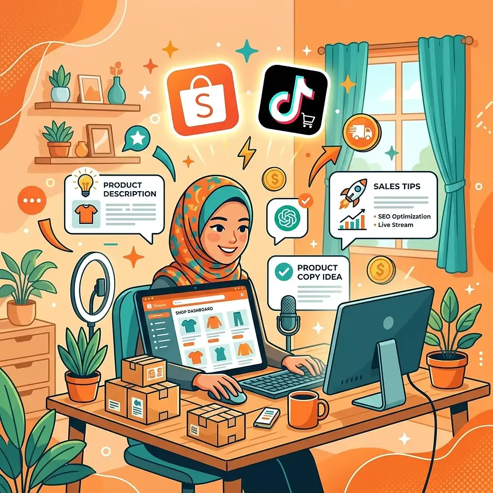 Artikel ini tunjukkan 7 cara praktikal yang penjual Shopee, TikTok Shop, dan Lazada boleh guna ChatGPT sekarang juga. Tiada kemahiran teknikal diperlukan.